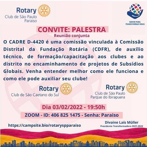 Postado em: 27 de Janeiro de 2022 por Rotary Club de São Paulo-Paraíso