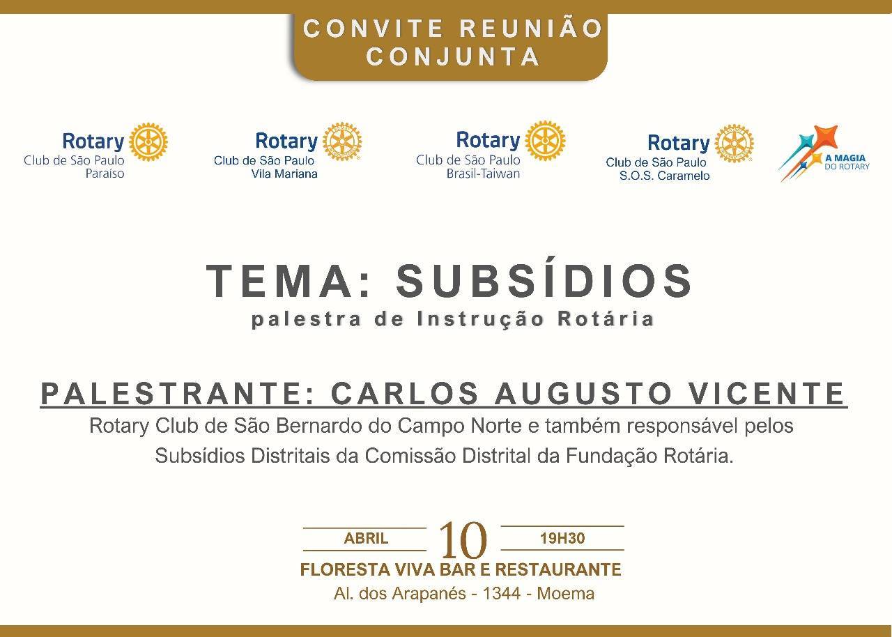 Palestra de Instrução Rotária: Subsídios com Carlos Augusto Vicente, Companheiro do Rotary Club de São Bernardo do Campo Norte, responsável pelos Subsídios Distritais da Comissão Distrital da Fundação Rotária.