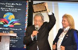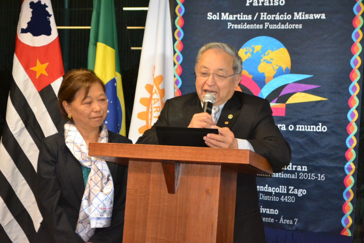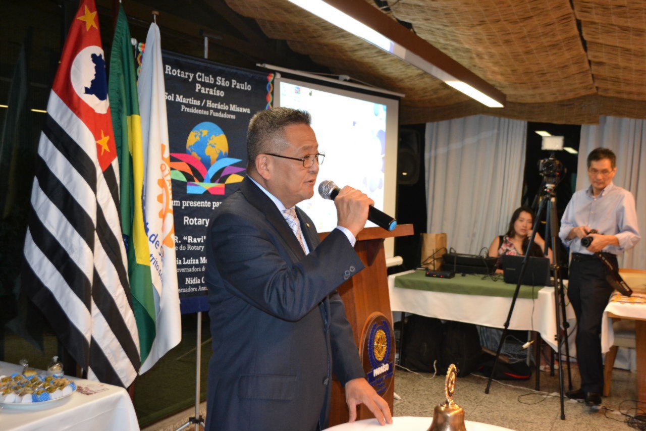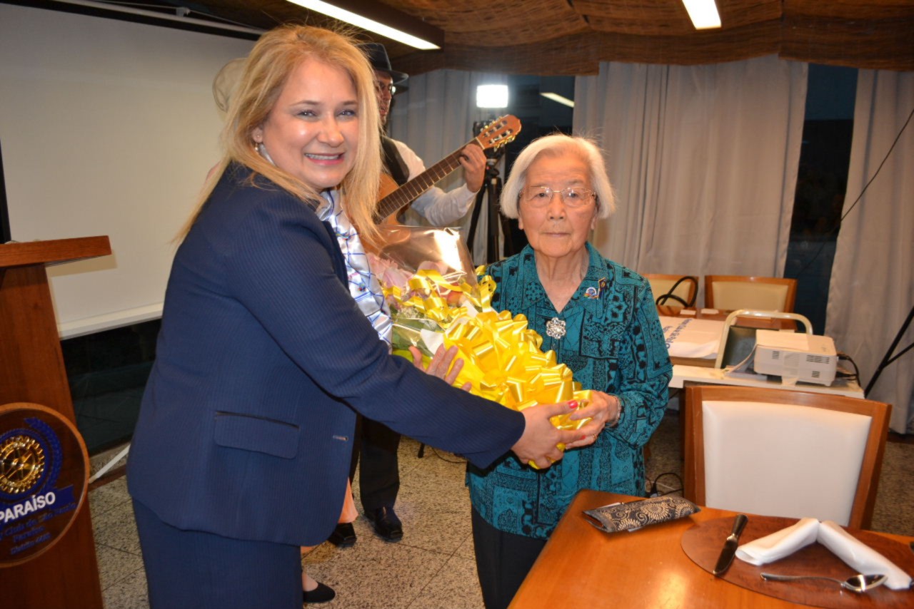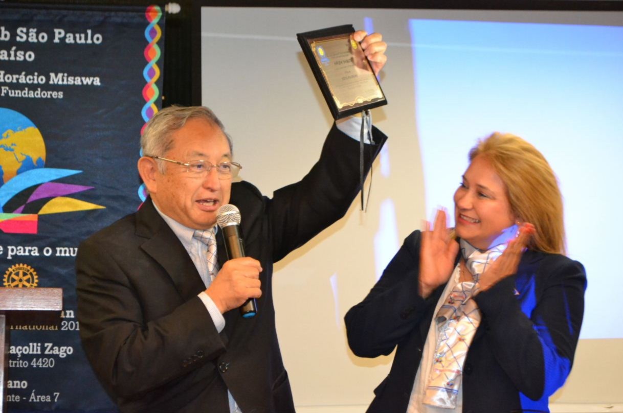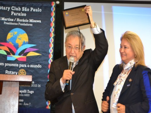 A festiva reservou um momento especial para o EGD Hiroshi Shimuta, que durante sua gestão 2014-2015, fundou o clube e em reconhecimento ao seu incentivo e apoio dedicados ao clube, recebeu o título de Sócio Honorário do clube. Com muita alegria, Shimuta recebeu a placa de reconhecimento, ladeado por Suma Imura Shimuta, sua esposa e presidente do RCSP Aeroporto, clube padrinho do RCSP Paraíso.