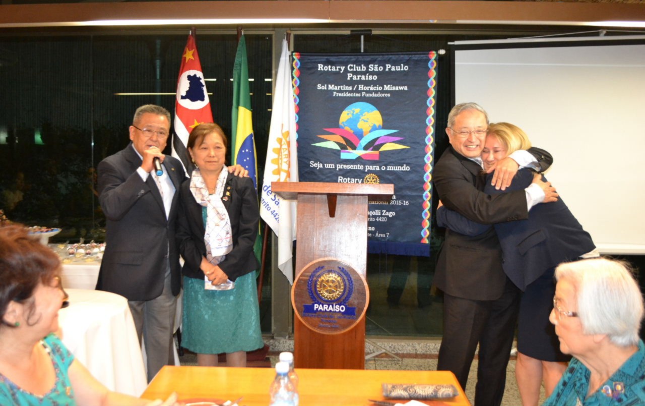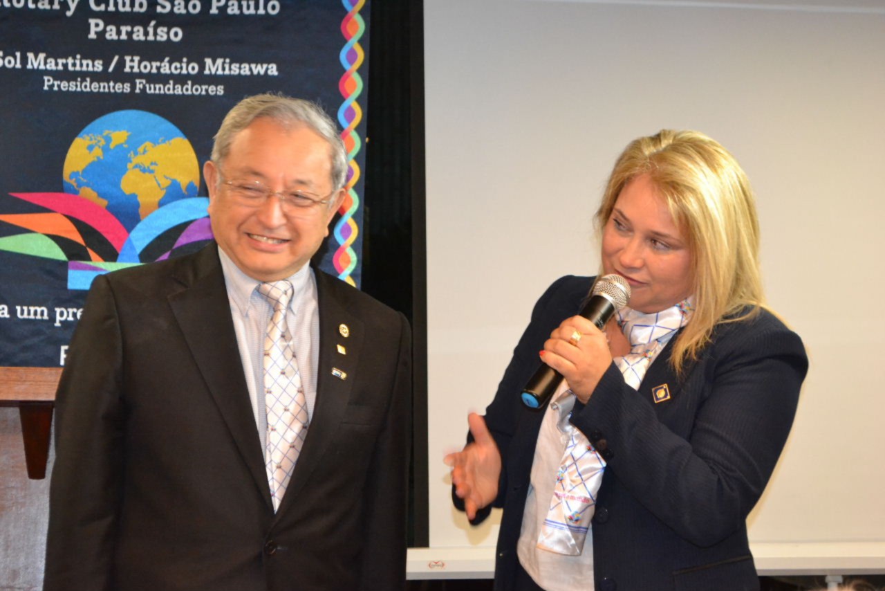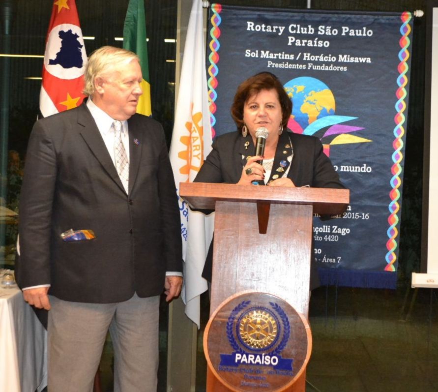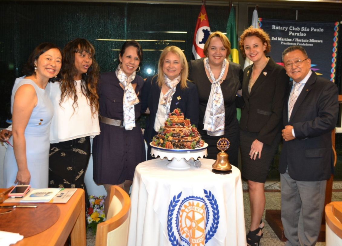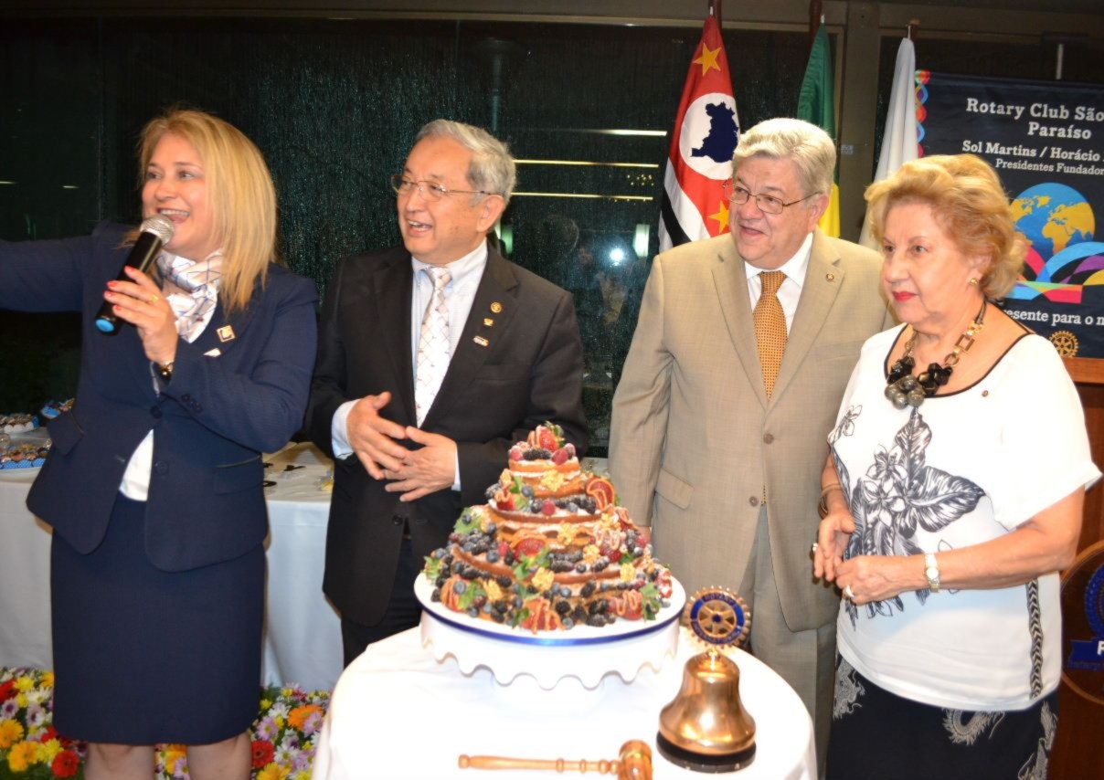 Comemorando seu 1º aniversário, o Rotary Club de São Paulo Paraíso recebeu a visita do casal governador, Maria Luíza Mendaçolli Zago e Cláudio, que foram recebidos pelo casal presidente presente Sol Martins e Horácio Misawa em clima de festa.