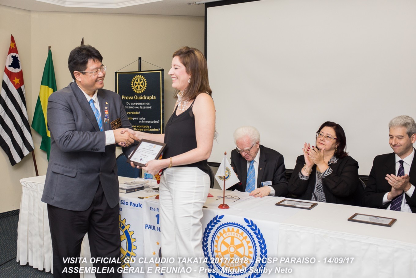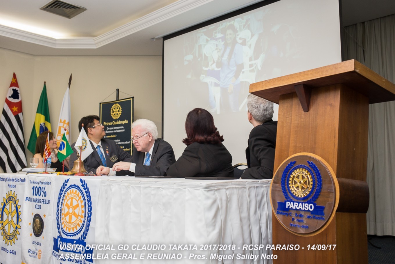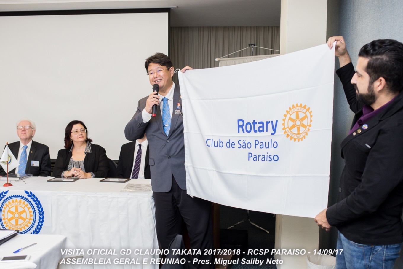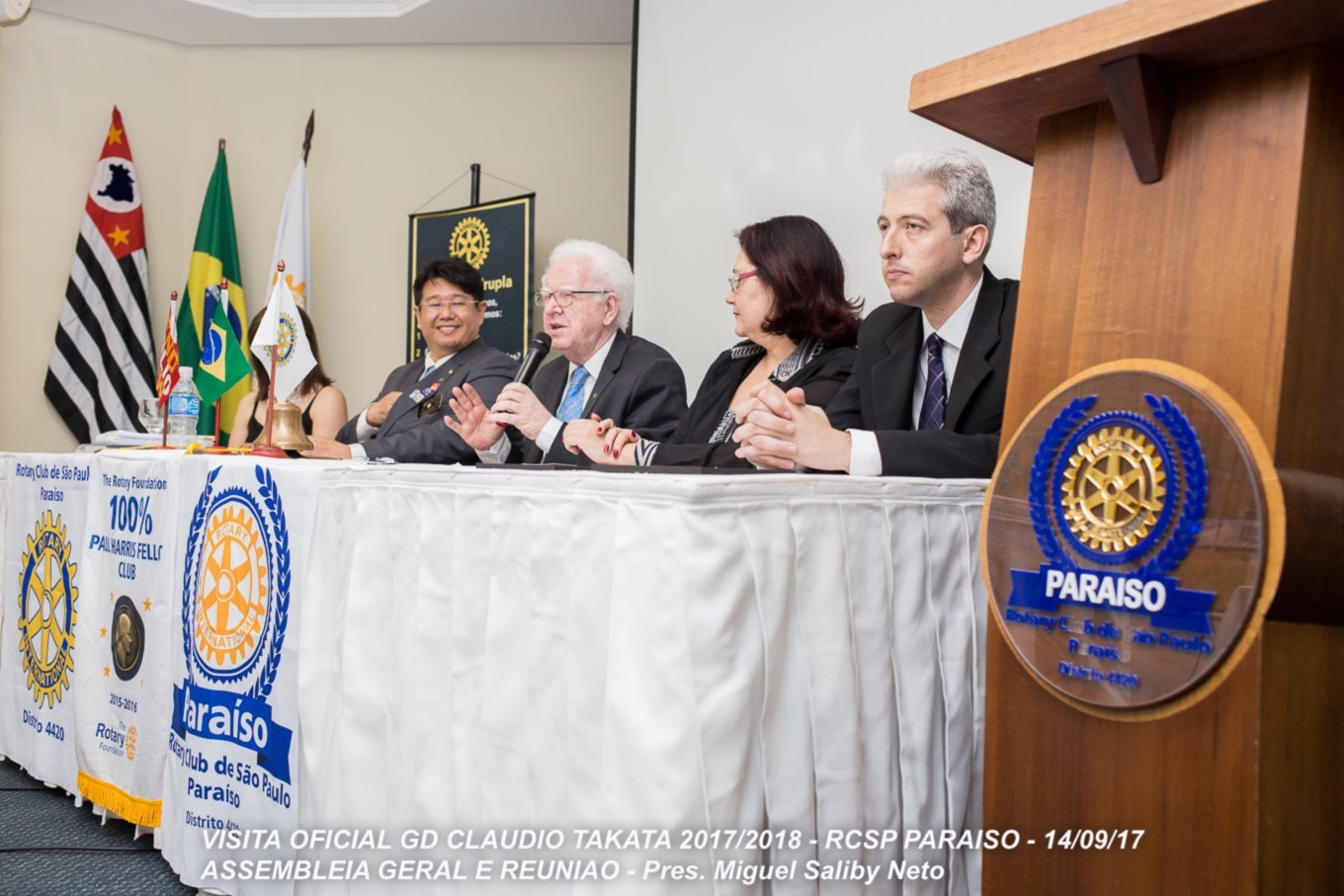 No dia 14 de setembro, o Rotary Club São Paulo Paraíso recebeu a visita oficial do governador do Distrito 4420, Claudio Takata e sua esposa Marie. A festiva foi realizada no Hotel Century Paulista, em São Paulo. O evento reuniu autoridades rotárias, membros da equipe distrital, familiares e amigos.