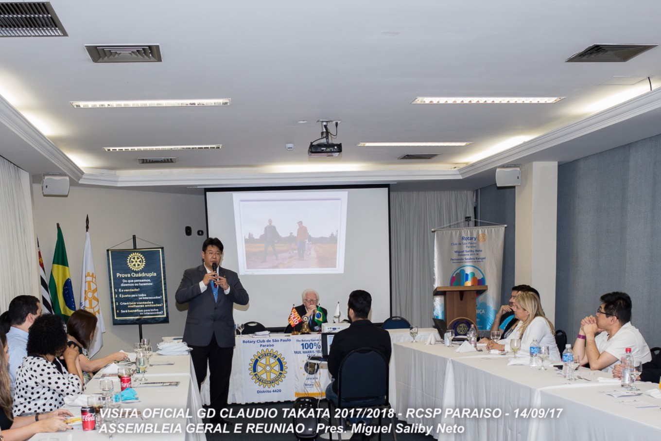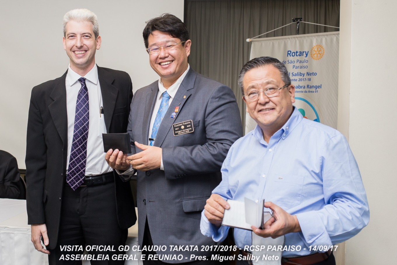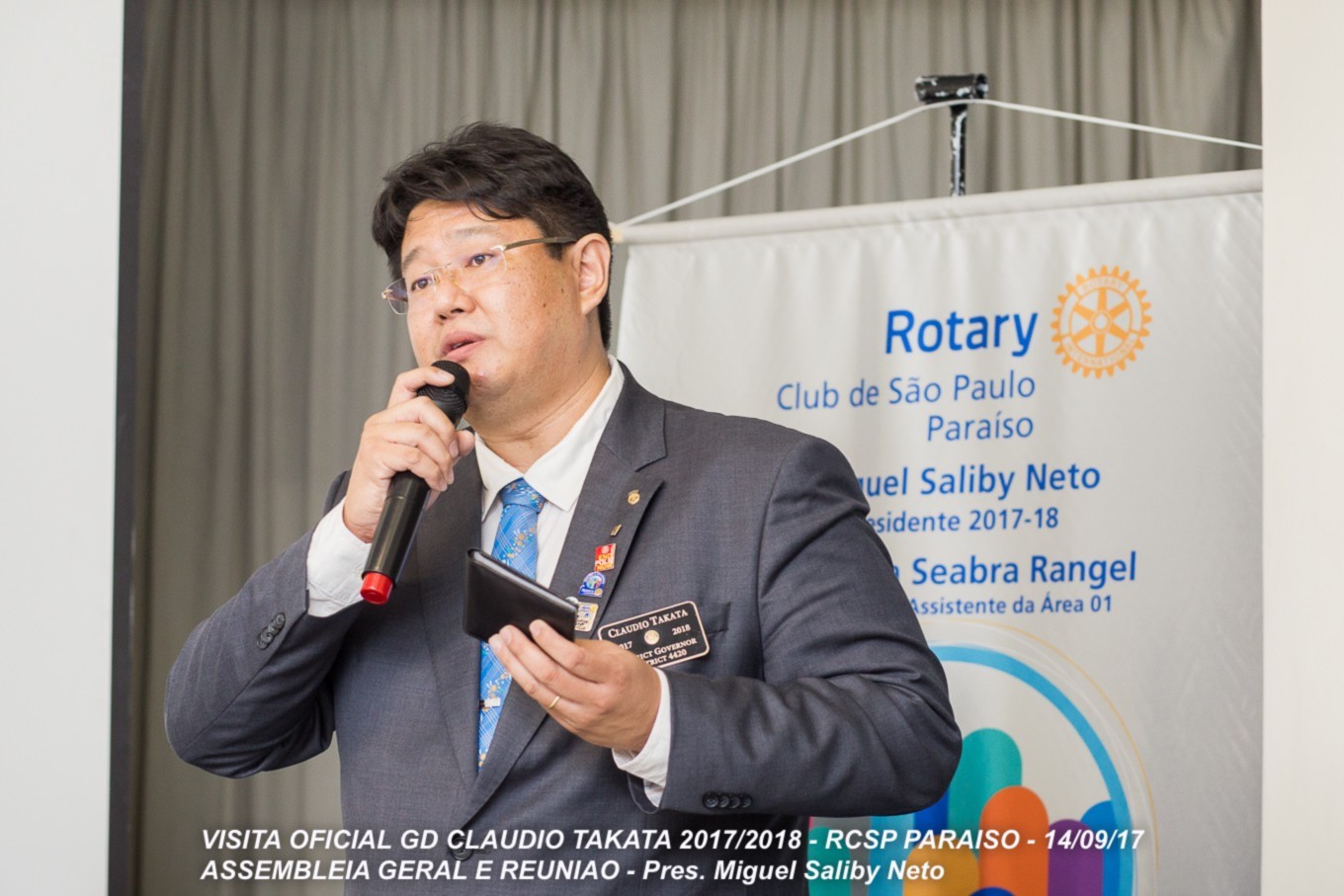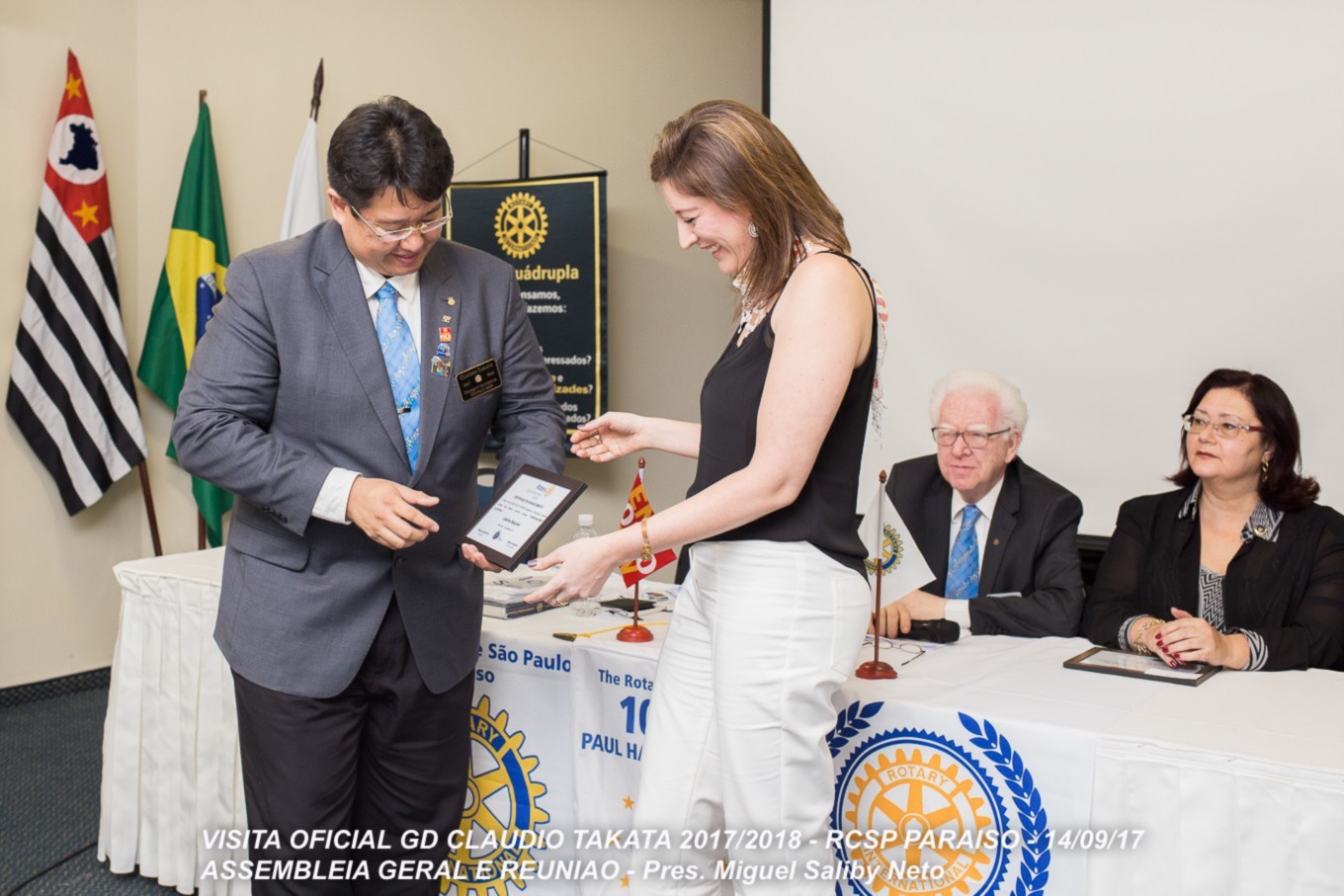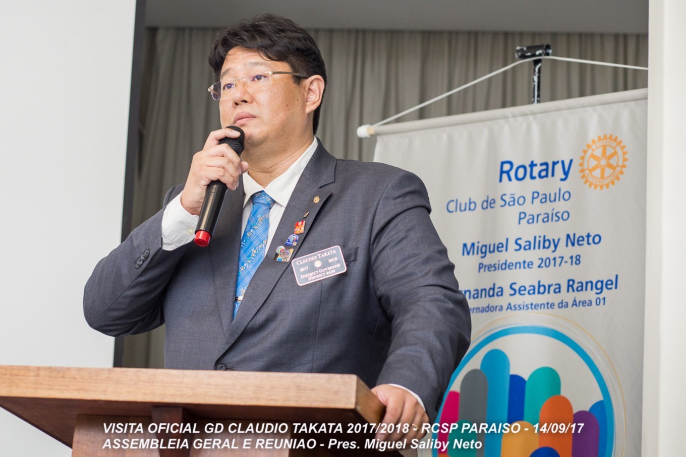 No dia 14 de setembro, o Rotary Club São Paulo Paraíso recebeu a visita oficial do governador do Distrito 4420, Claudio Takata e sua esposa Marie. A festiva foi realizada no Hotel Century Paulista, em São Paulo. O evento reuniu autoridades rotárias, membros da equipe distrital, familiares e amigos.