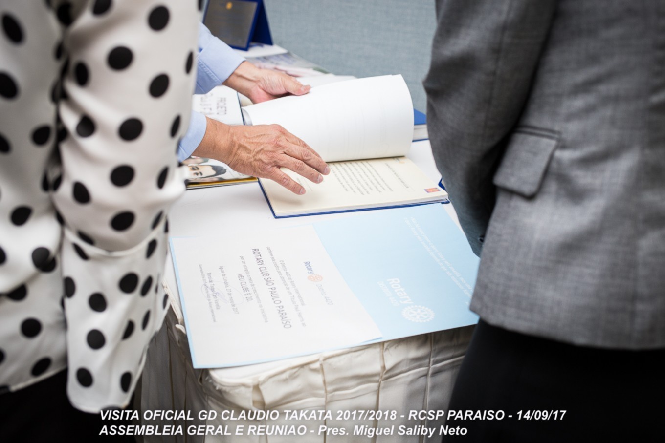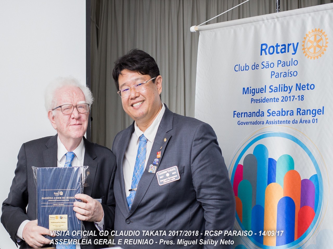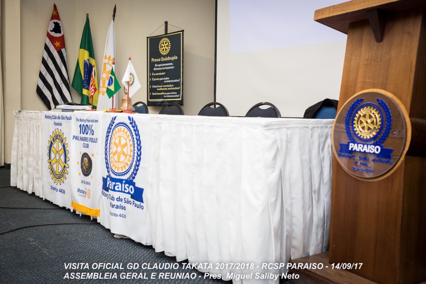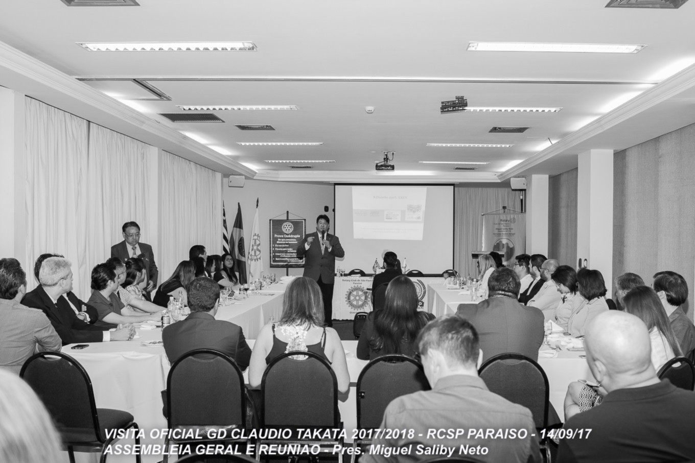 No dia 14 de setembro, o Rotary Club São Paulo Paraíso recebeu a visita oficial do governador do Distrito 4420, Claudio Takata e sua esposa Marie. A festiva foi realizada no Hotel Century Paulista, em São Paulo. O evento reuniu autoridades rotárias, membros da equipe distrital, familiares e amigos.