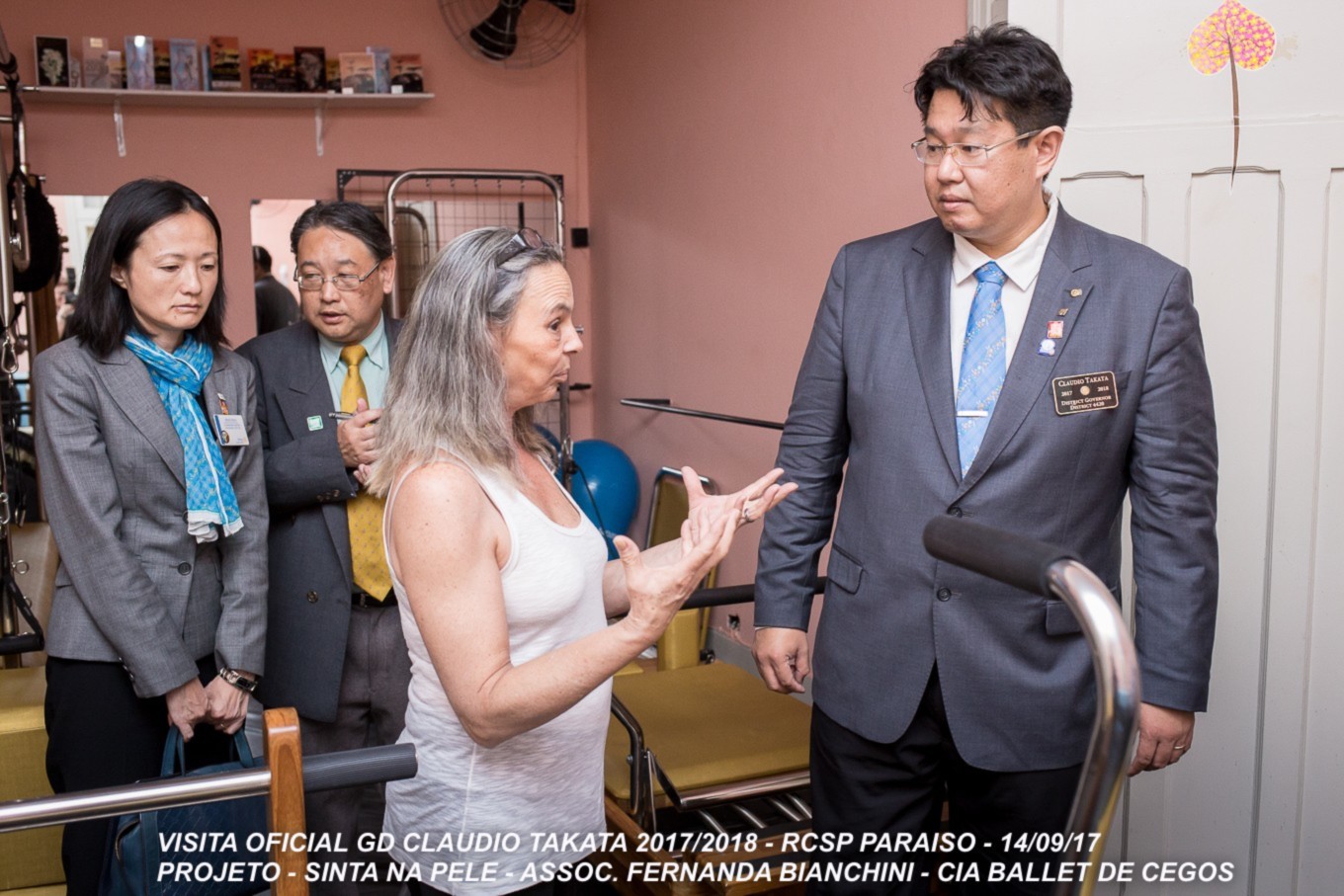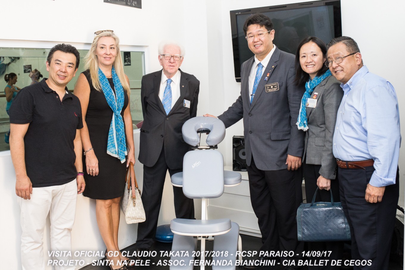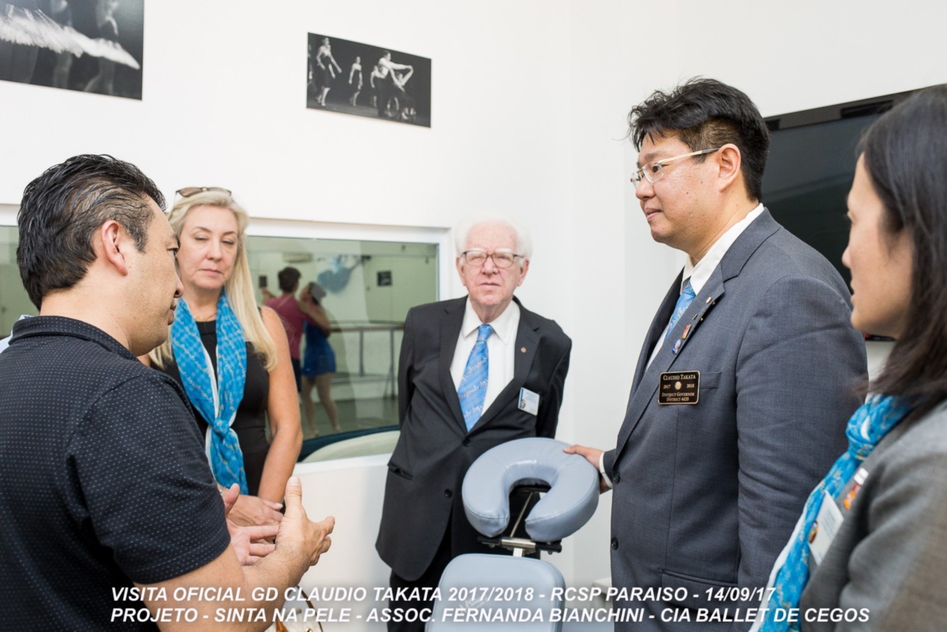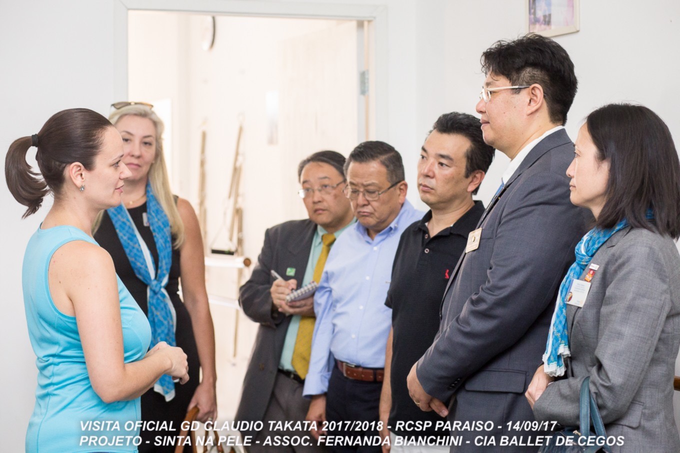 O casal foi recebido pela governadora assistente da área 1, Fernanda Seabra Rangel, acompanhada pelo presidente do clube, Miguel Saliby Neto, Elania Rosa de Lutiss, responsável pelo administrativo da AFB, Marcelo Yoshisaki, professor de massoterapia na associação, Horácio Misawa, presidente fundador do RCSP Paraíso e equipe rotária.