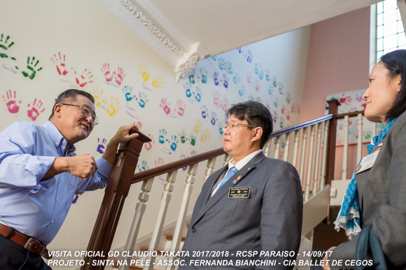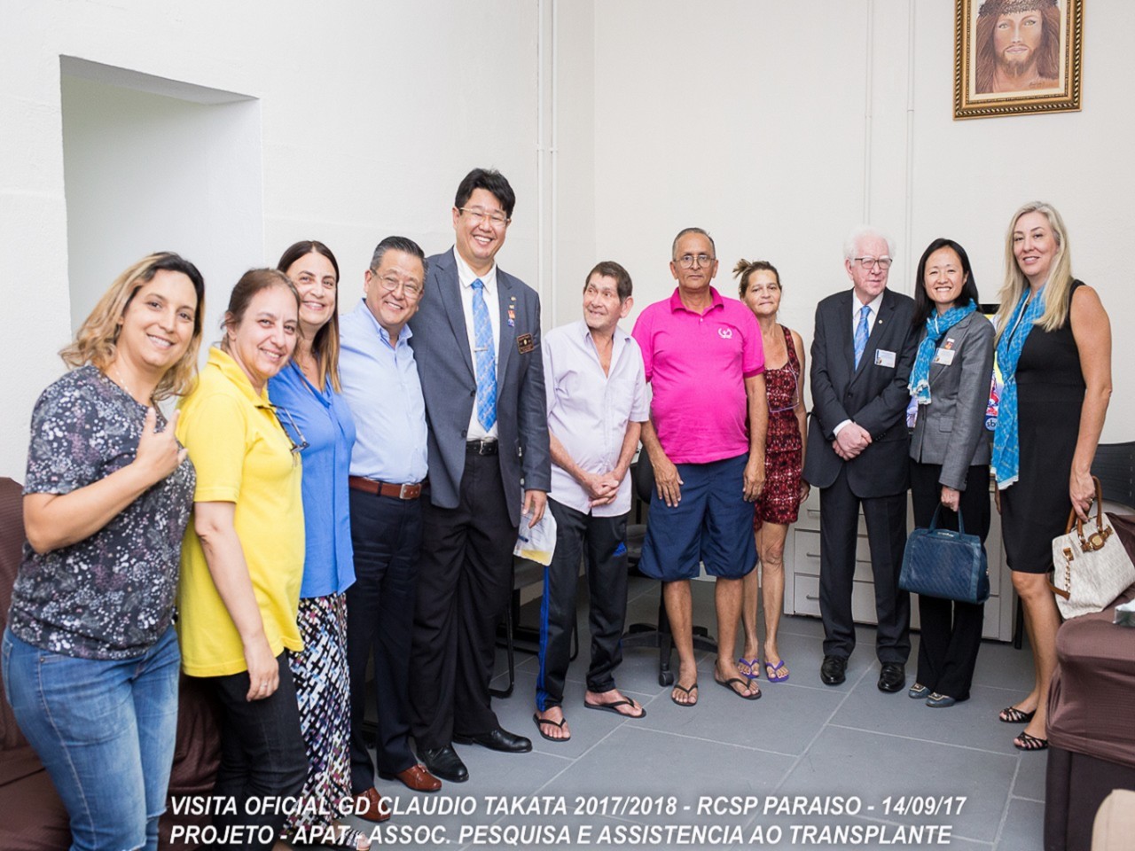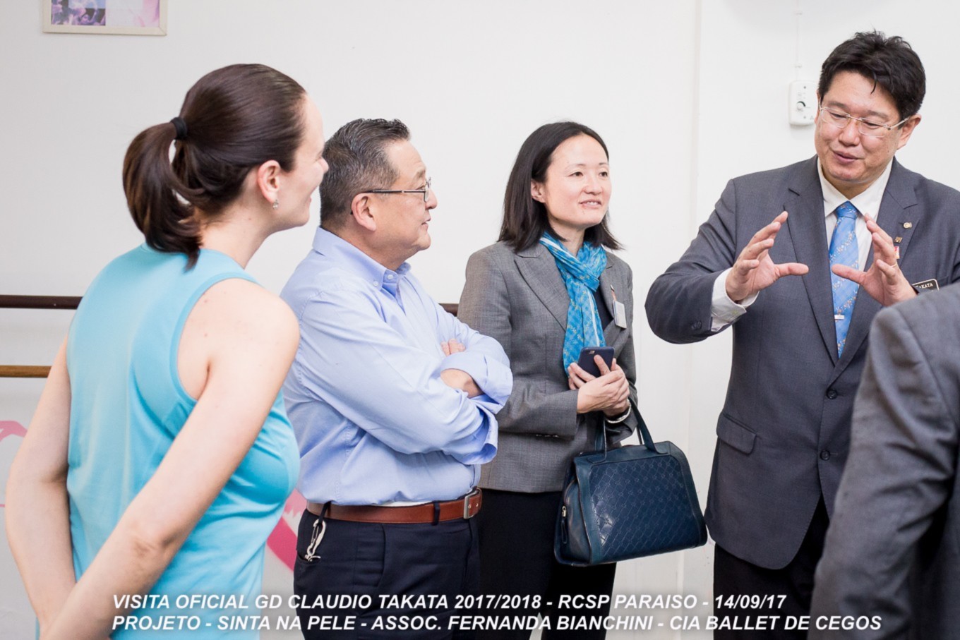 O casal foi recebido pela governadora assistente da área 1, Fernanda Seabra Rangel, acompanhada pelo presidente do clube, Miguel Saliby Neto, Elania Rosa de Lutiss, responsável pelo administrativo da AFB, Marcelo Yoshisaki, professor de massoterapia na associação, Horácio Misawa, presidente fundador do RCSP Paraíso e equipe rotária.