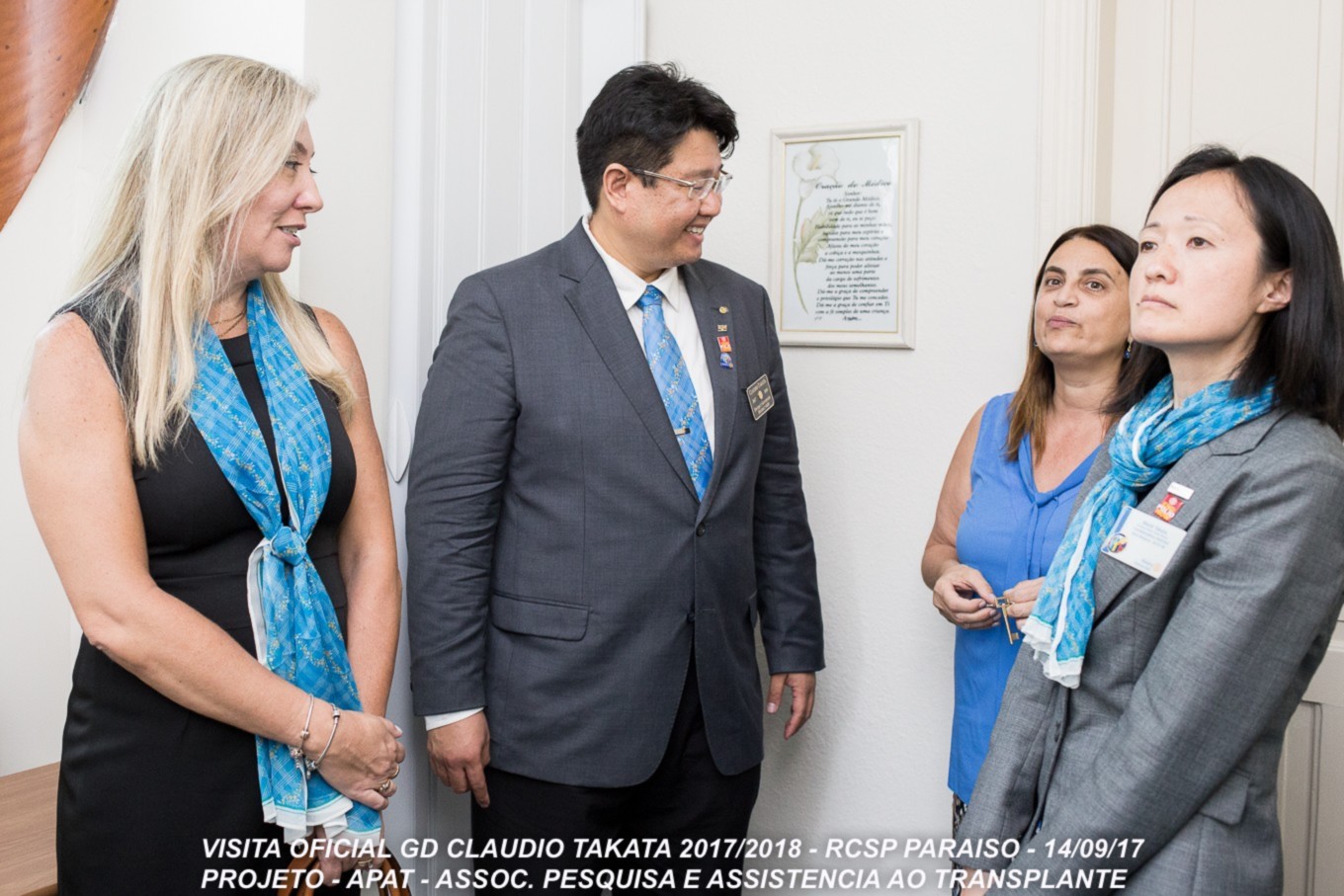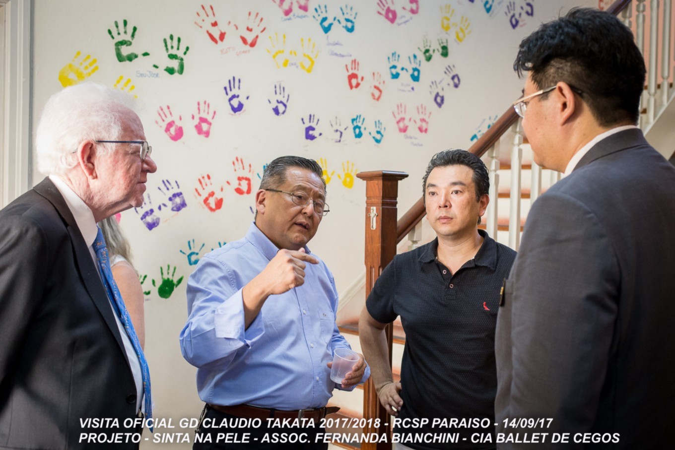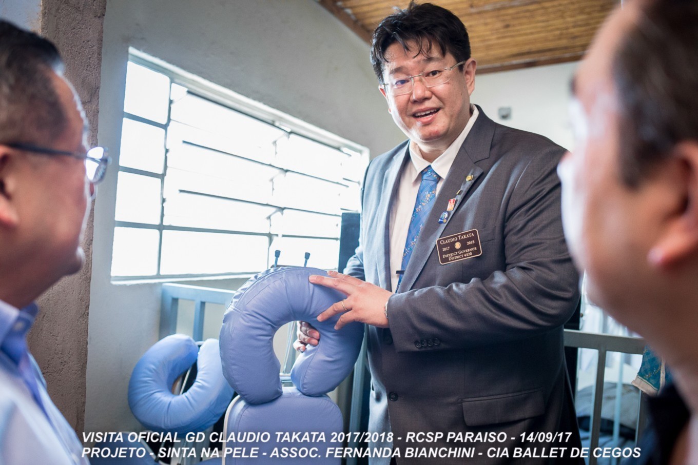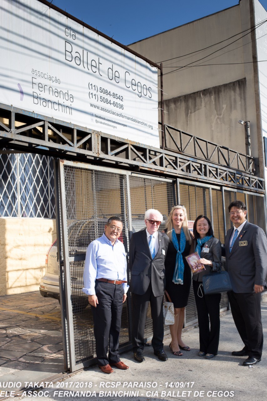 O casal foi recebido pela governadora assistente da área 1, Fernanda Seabra Rangel, acompanhada pelo presidente do clube, Miguel Saliby Neto, Elania Rosa de Lutiss, responsável pelo administrativo da AFB, Marcelo Yoshisaki, professor de massoterapia na associação, Horácio Misawa, presidente fundador do RCSP Paraíso e equipe rotária.