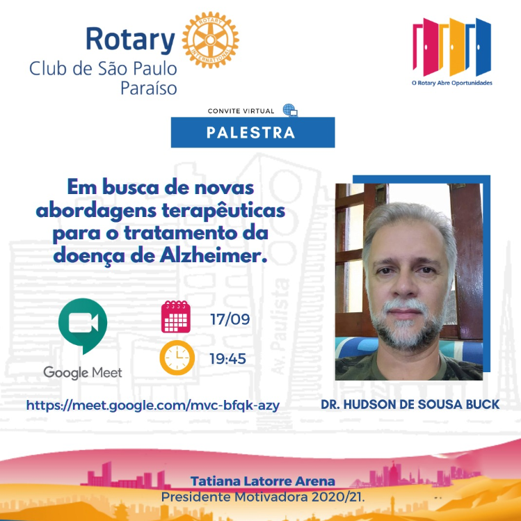Rotary Club de São Paulo Paraíso traz o Dr Hudson de Sousa Buck para nos falar sobre novas abordagens terapêuticas para a doença de Alzheimer.
